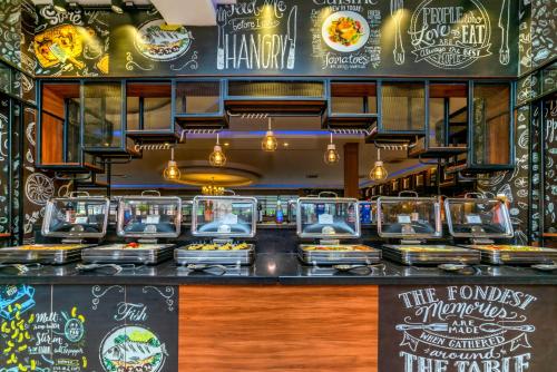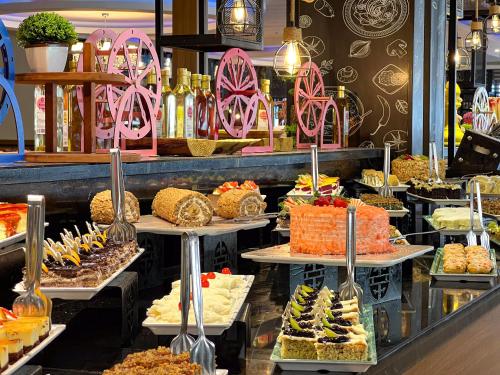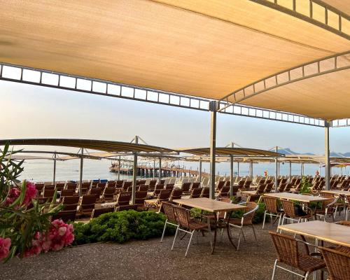 یکی از جذابترین بخشهای هتل، تجربهی غذایی متنوع آن است. رستوران اصلی هتل در فضایی بزرگ و نورگیر، وعدههای صبحانه، ناهار و شام را بهصورت بوفه باز سرو میکند. میزهای پر از انواع غذاهای ترکی و بینالمللی، دسرهای رنگارنگ، میوههای تازه و نانهای گرم محلی، هر ذائقهای را راضی میکند.
