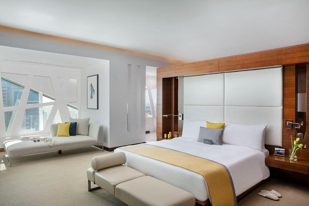 یکی از شاخصترین ویژگیهای voco Dubai، اتاقهای بسیار بلند و نورگیر با چشمانداز فوقالعاده است. این هتل دارای بیش از ۴۷۰ اتاق و سوئیت لوکس است که در طبقات بالای برج قرار دارند و منظرهای مستقیم به برج خلیفه، خیابان شیخ زاید یا خلیج فارس ارائه میدهند.