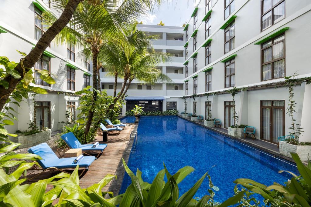 هتل یک استخر روباز زیبا دارد که دور تا دورش را تختهای مخصوص آفتابگرفتن و سایهبانهای سفید احاطه کردهاند. این استخر شاید بزرگترین استخر کوتا نباشد، اما بسیار تمیز، خوشطراحی و مناسب برای گذراندن بعدازظهری آرام است.