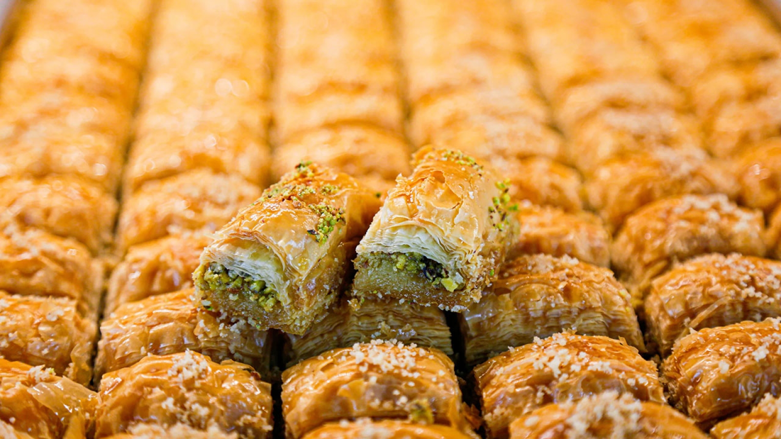 باقلوا: لایههای خمیر نازک پر شده با پسته یا گردو و شیرینیای که در دهان آب میشود. برندهایی مثل Karakuş و Hafız Mustafa از معروفترینها هستند.